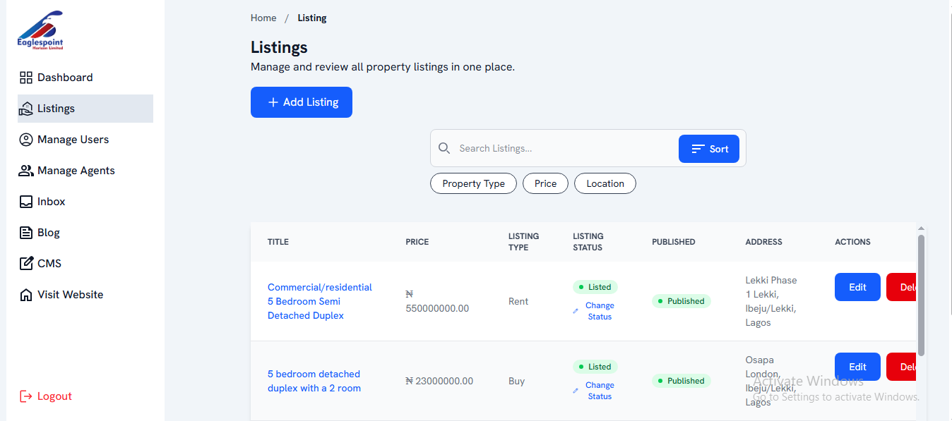 While many real estate companies settle for static sites and pre-built sites, Eaglespoint needed something more dynamic, they needed a platform that could handle property listings, agent management, and content publishing while staying clean and user-friendly.
