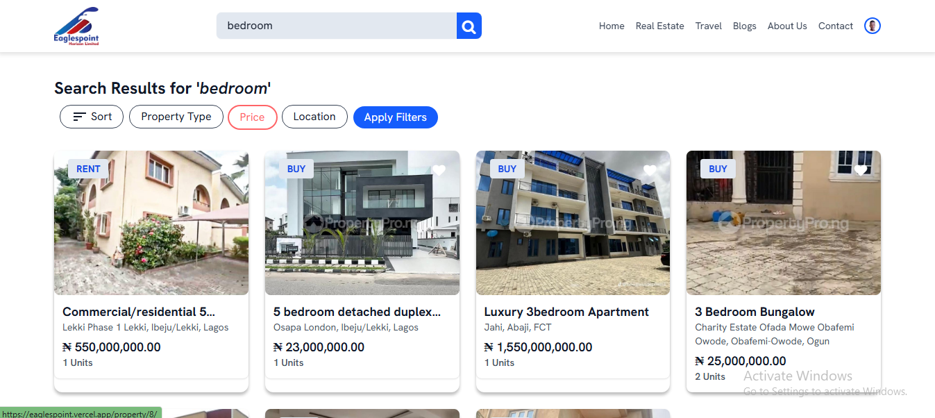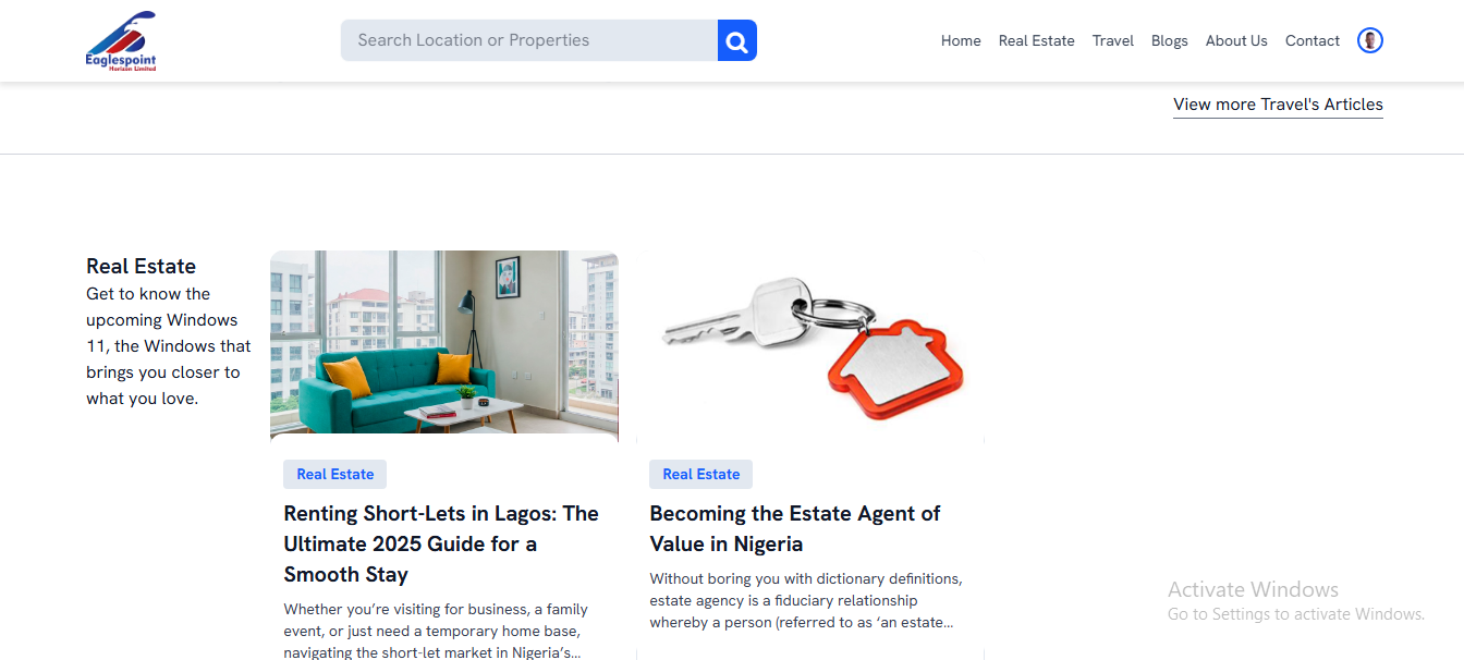 Eaglespoint Horizon Ltd. is a real estate and travel company in Nigeria. I built their company website to serve as both a digital presence and a functional business tool.